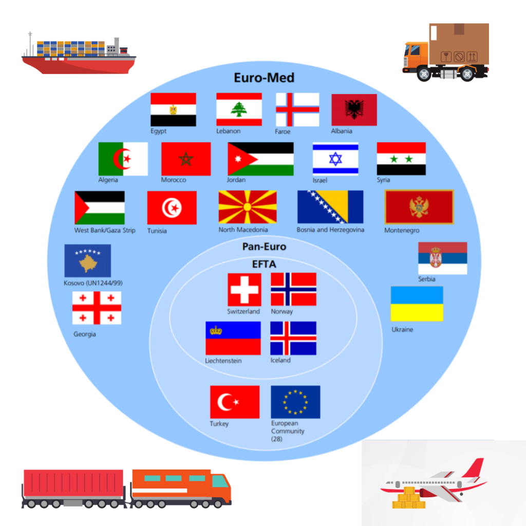 Le cumul diagonal est un mécanisme qui permet aux produits originaires d’un pays A, utilisé dans un pays B pour fabriquer un produit fini, de conserver leur origine préférentielle lors de leur exportation vers un pays C, à condition que ces trois pays soient liés par des accords de libre-échange prévoyant les mêmes règles d’origine. Ce système est essentiel pour les entreprises qui opèrent dans plusieurs pays de la région PEM, car il leur permet de maximiser les bénéfices des accords commerciaux existants.