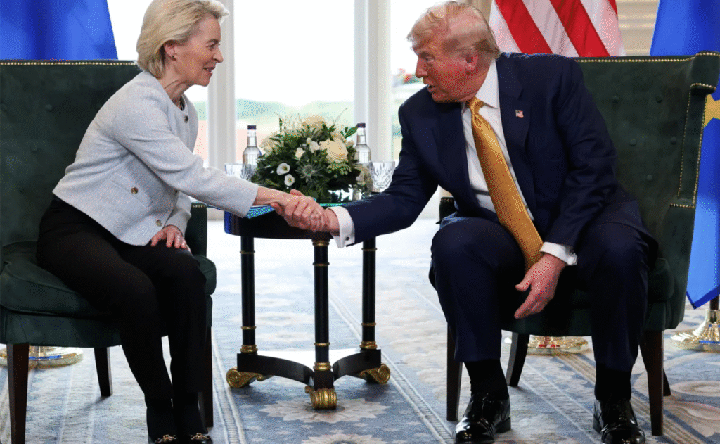 L’UE et les États-Unis ont conclu un accord sur les droits de douane, fixant un tarif maximal de 15 % pour la majorité des exportations. Des suppressions de droits ciblent les secteurs stratégiques et une coopération renforcée est prévue sur l’énergie, l’IA et les matières premières.